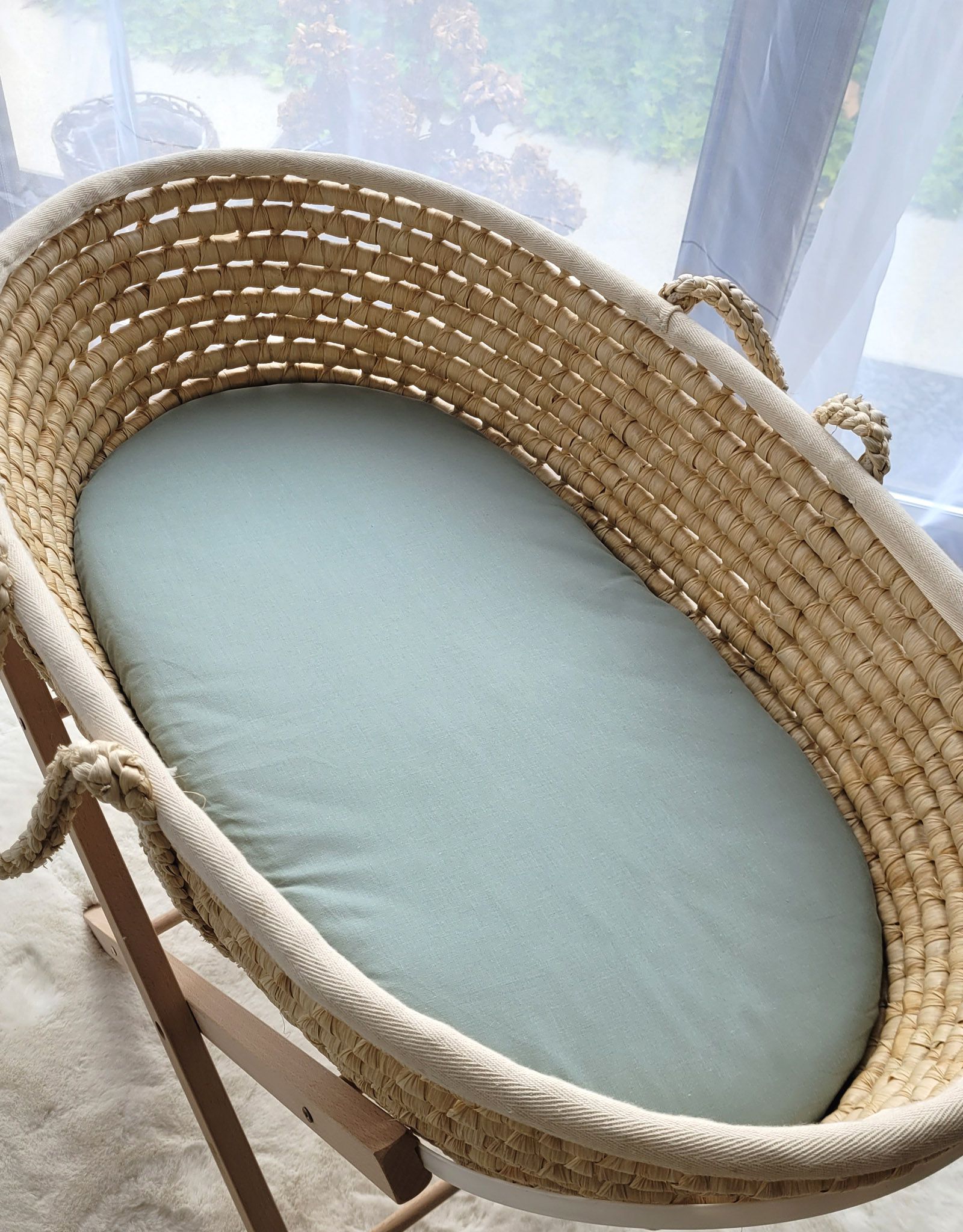 Prześcieradło bawełniane do kosza Mojżesza Boho wózka gondoli 75×35 cm – szałwia