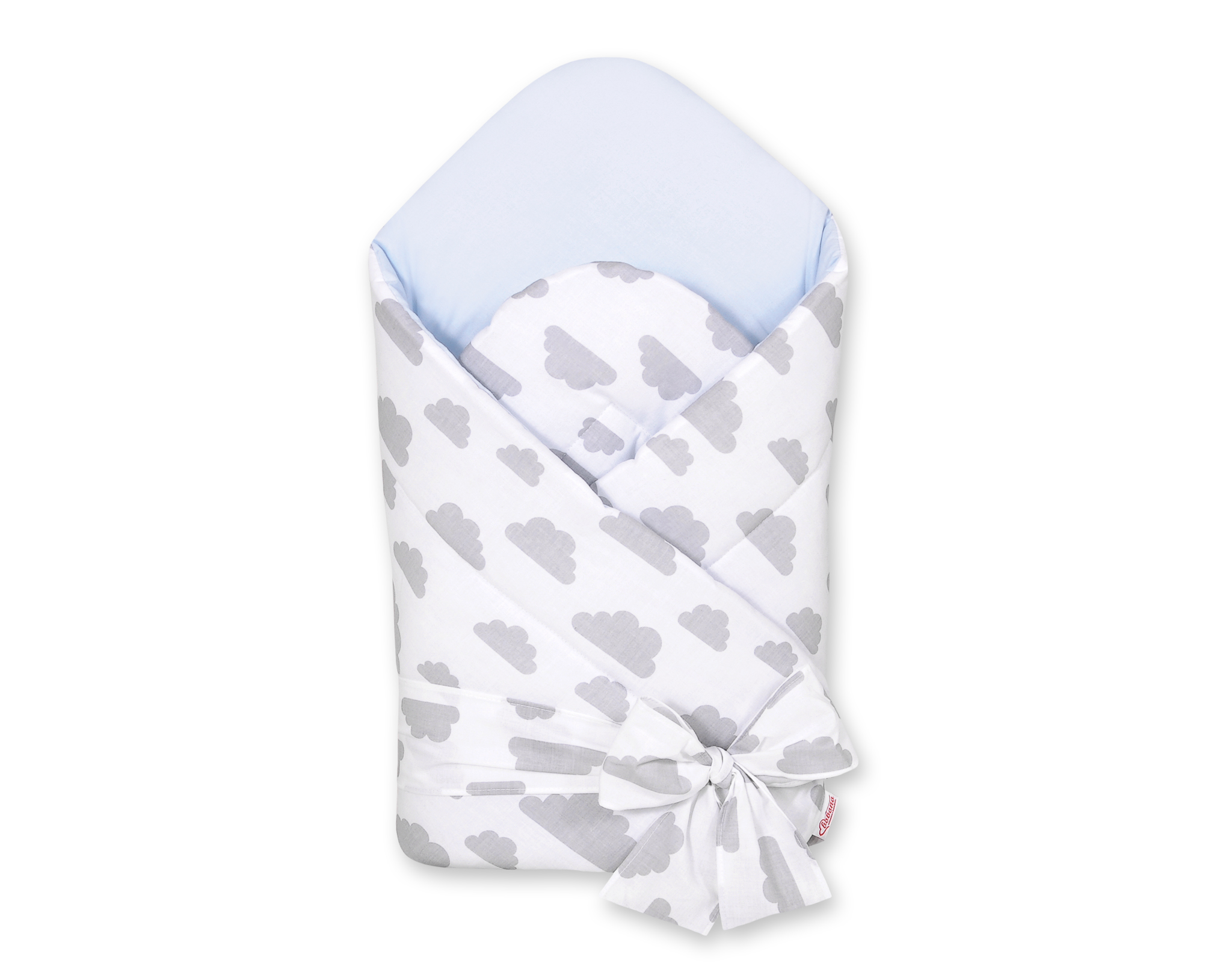 Rożek dla niemowląt z wiązaniem 2w1 usztywniany i miękki – chmurki szare/niebieski