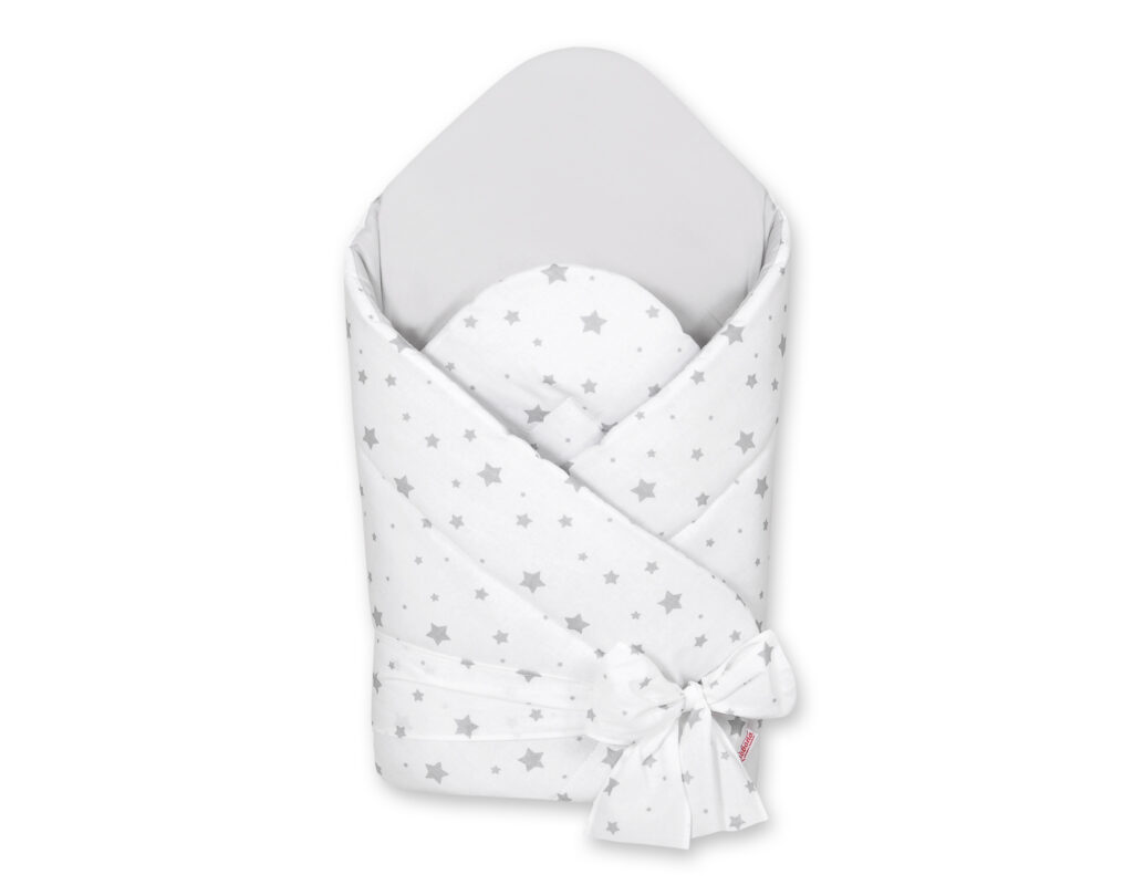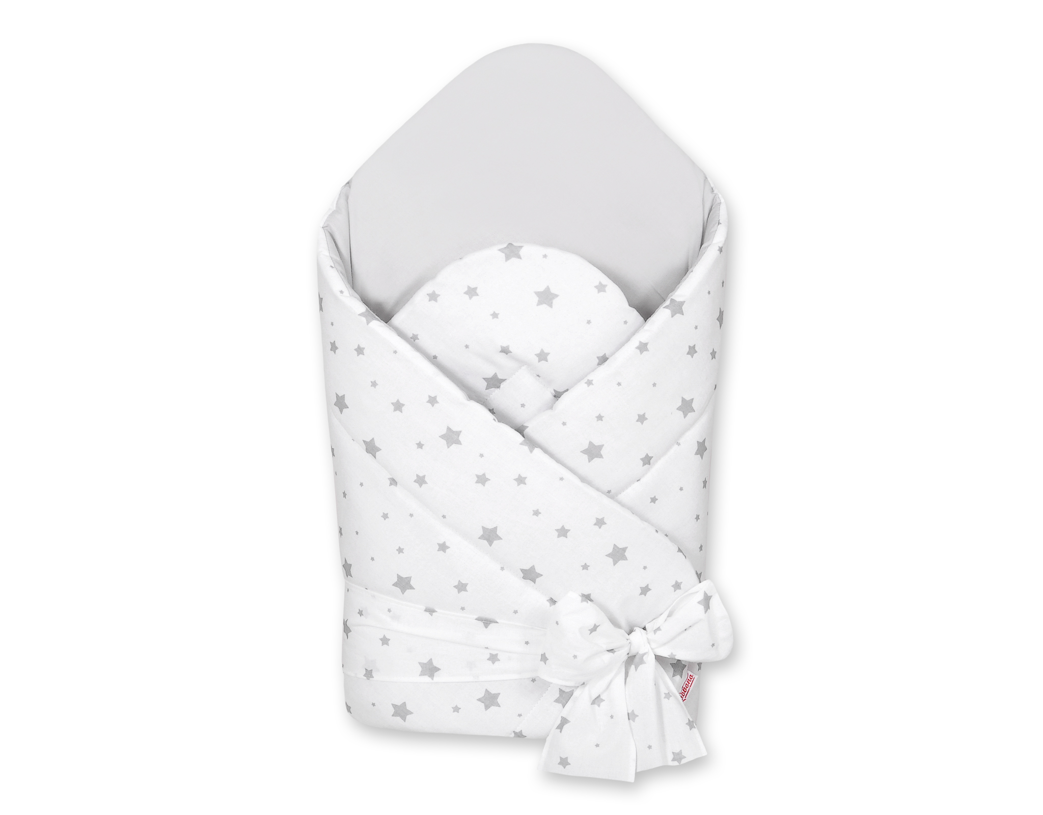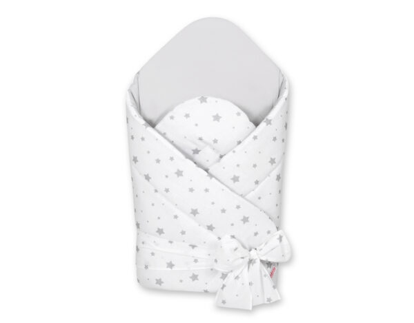 Rożek dla niemowląt z wiązaniem 2w1 usztywniany i miękki – mini gwiazdki szare na białym tle