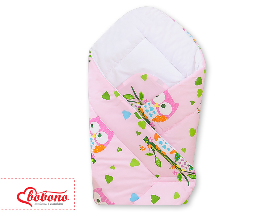 Rożek z usztywnieniem- Basic sowy na różowym tle