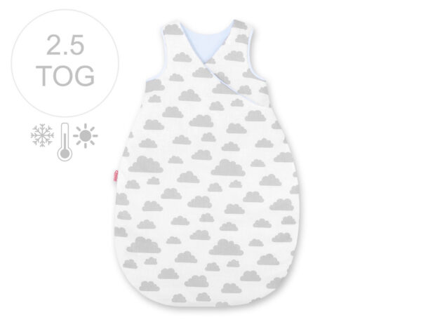 Śpiworek niemowlęcy całoroczny ocieplany 75 cm- chmurki szare/niebieski