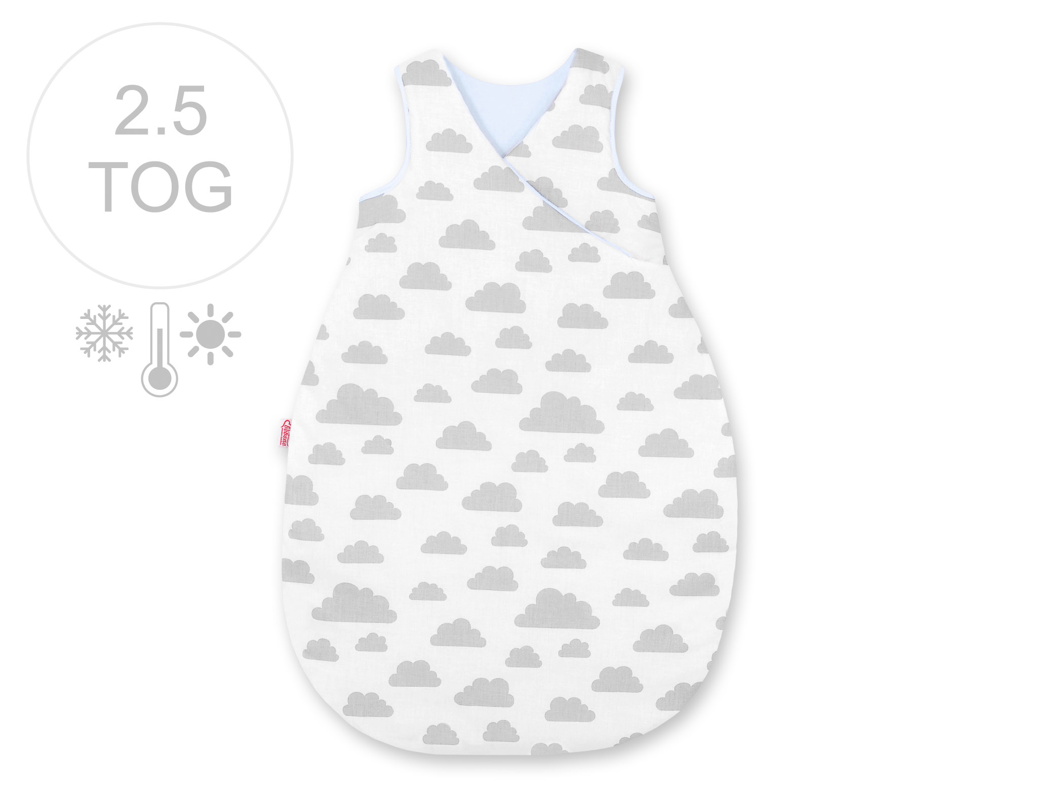 Grubość TOG 2,5 – śpiworek jest całoroczny, najlepszy komfort cieplny przy temperaturze w pokoju 18-21 ºC.