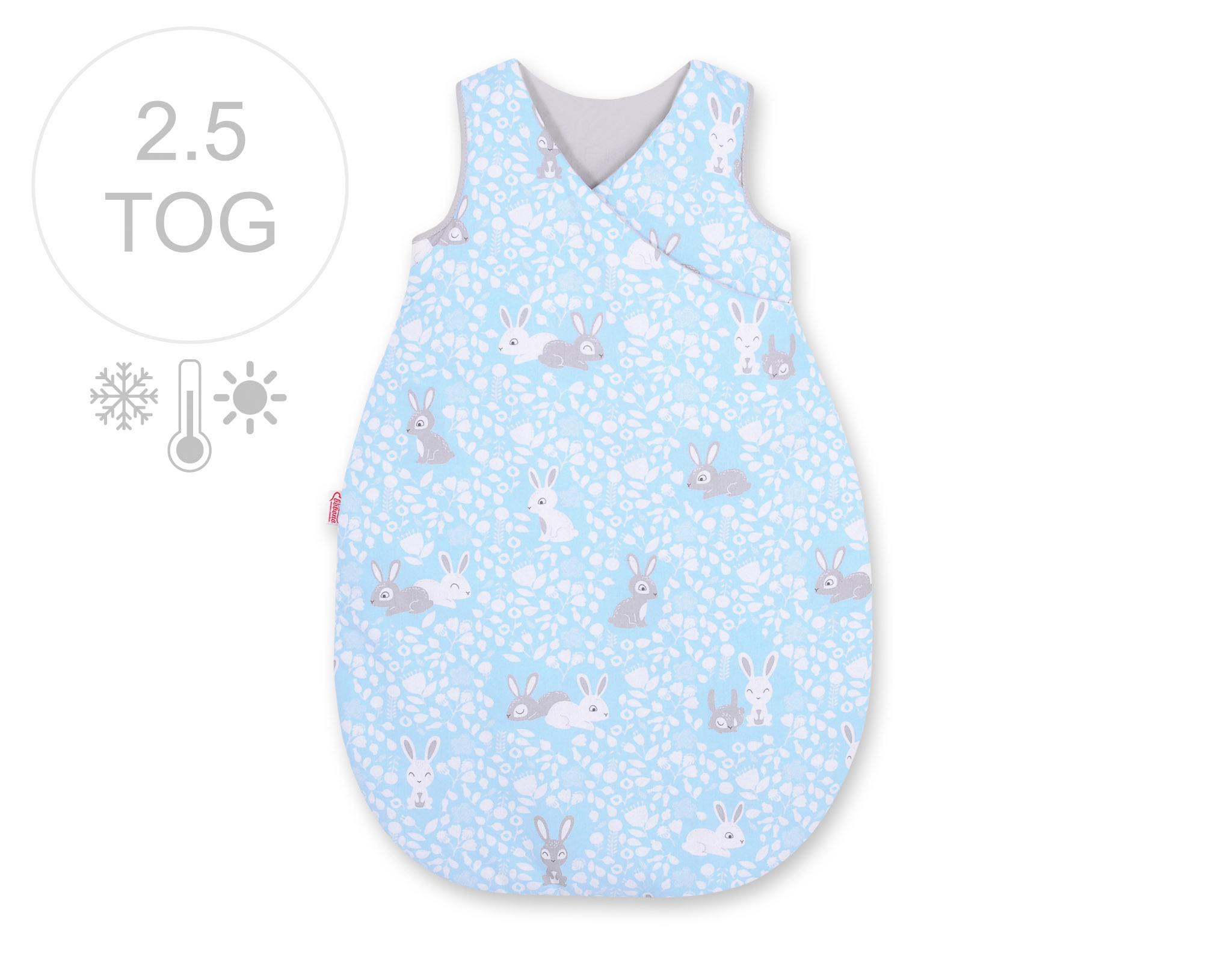 Grubość TOG 2,5 – śpiworek jest całoroczny, najlepszy komfort cieplny przy temperaturze w pokoju 18-21 ºC.