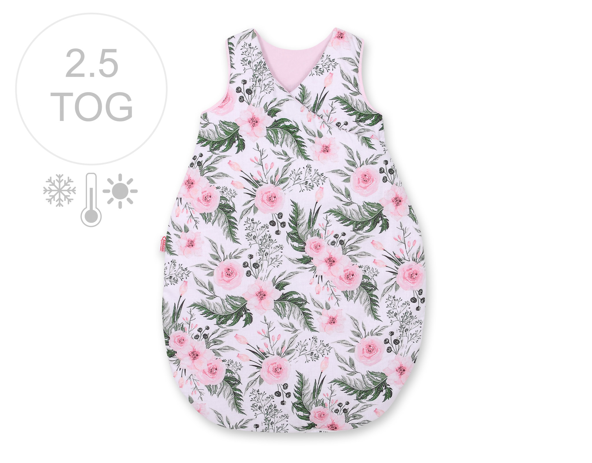 Śpiworek niemowlęcy całoroczny ocieplany 75 cm- peonie różowe