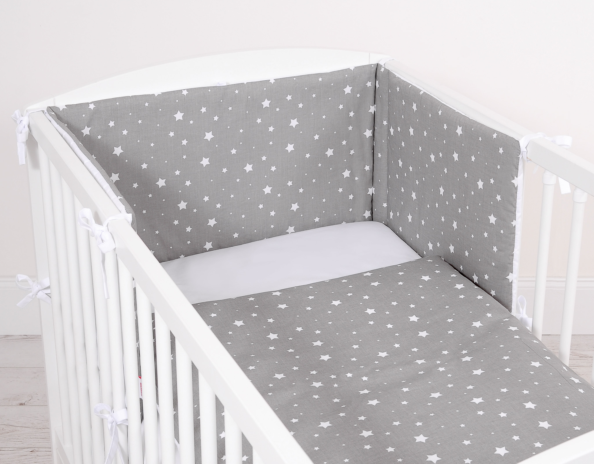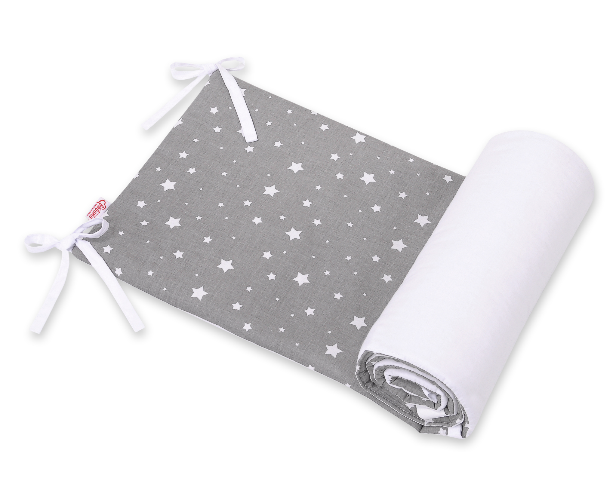 Uniwersalny dwustronny ochraniacz do łóżeczka – mini gwiazdki białe na szarym