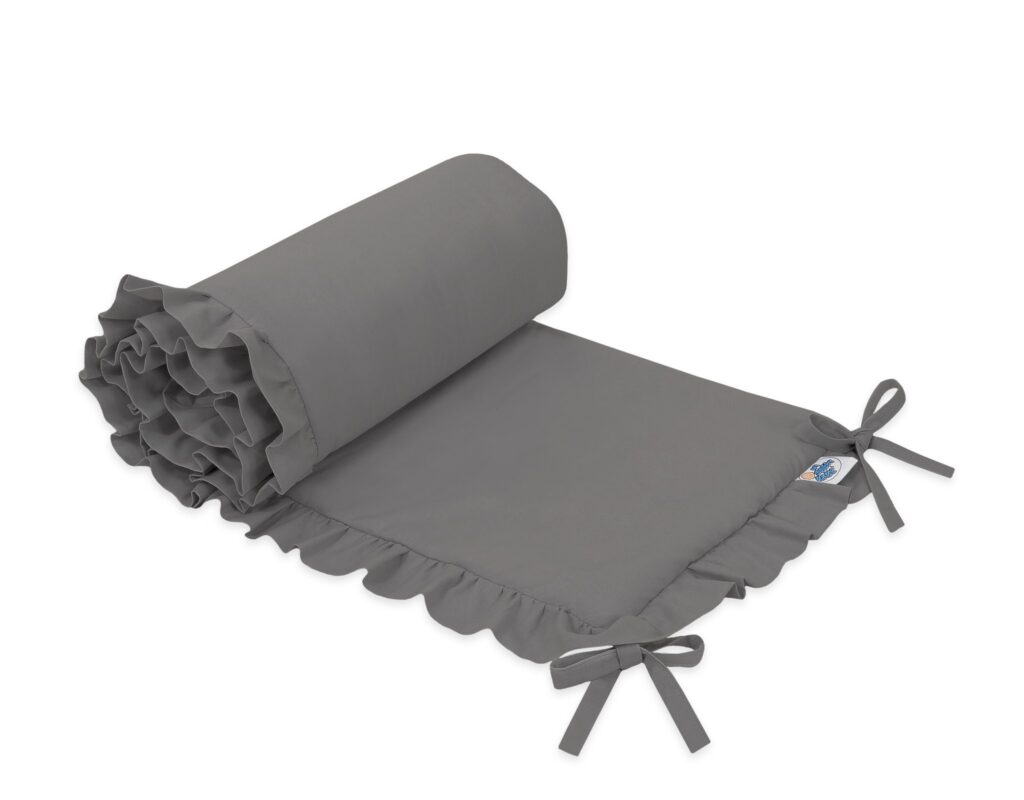 Uniwersalny ochraniacz z falbanką do łóżeczka niemowlęcego – antracyt