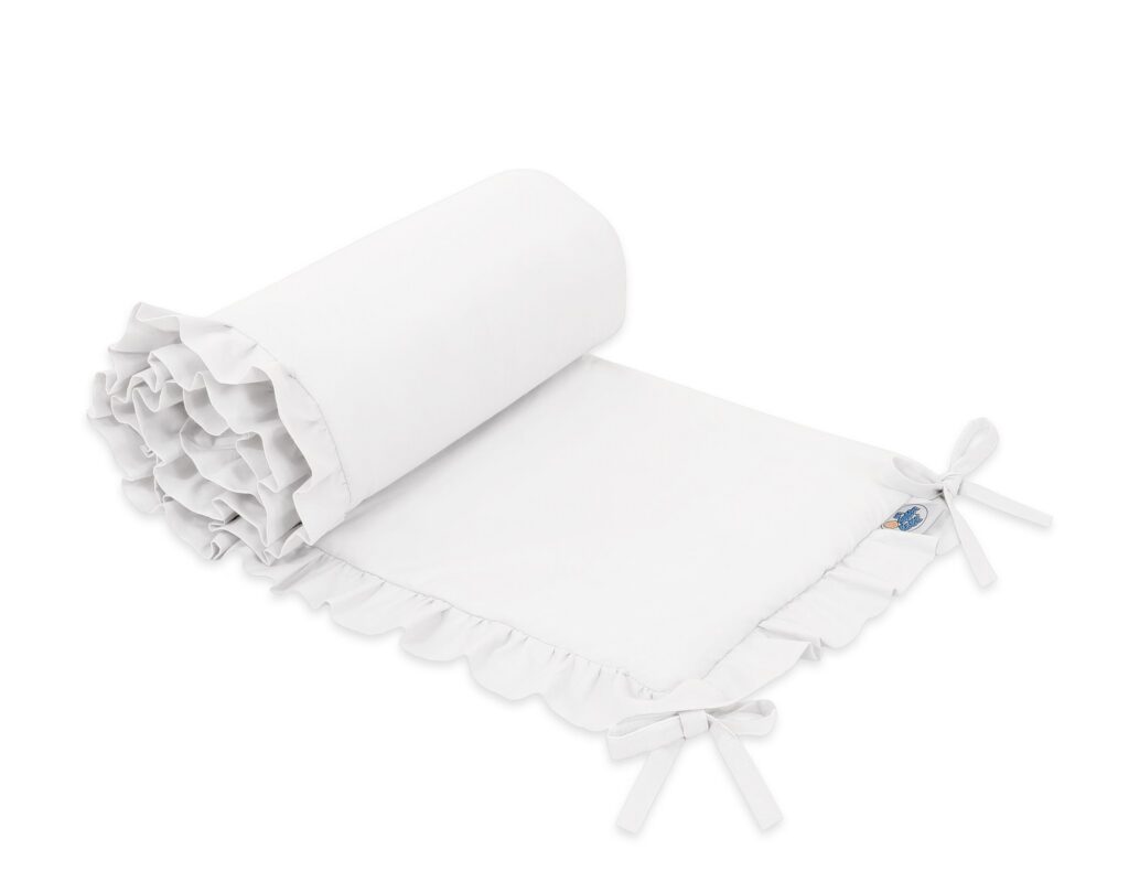 Uniwersalny ochraniacz z falbanką do łóżeczka niemowlęcego – biały