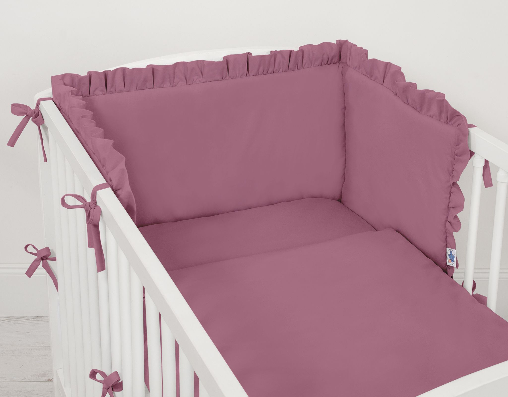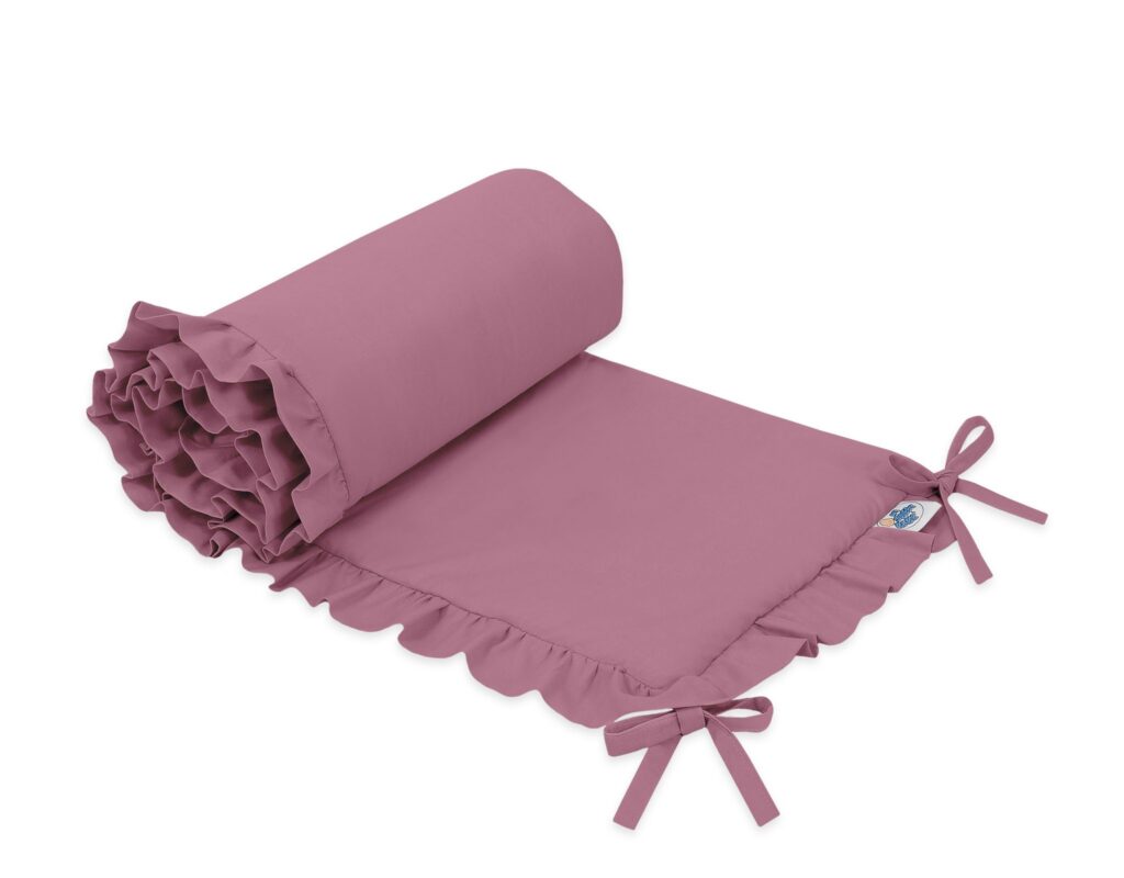 Uniwersalny ochraniacz z falbanką do łóżeczka niemowlęcego – róż retro