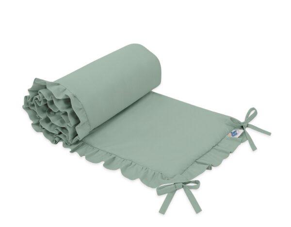 Uniwersalny ochraniacz z falbanką do łóżeczka niemowlęcego – szałwia