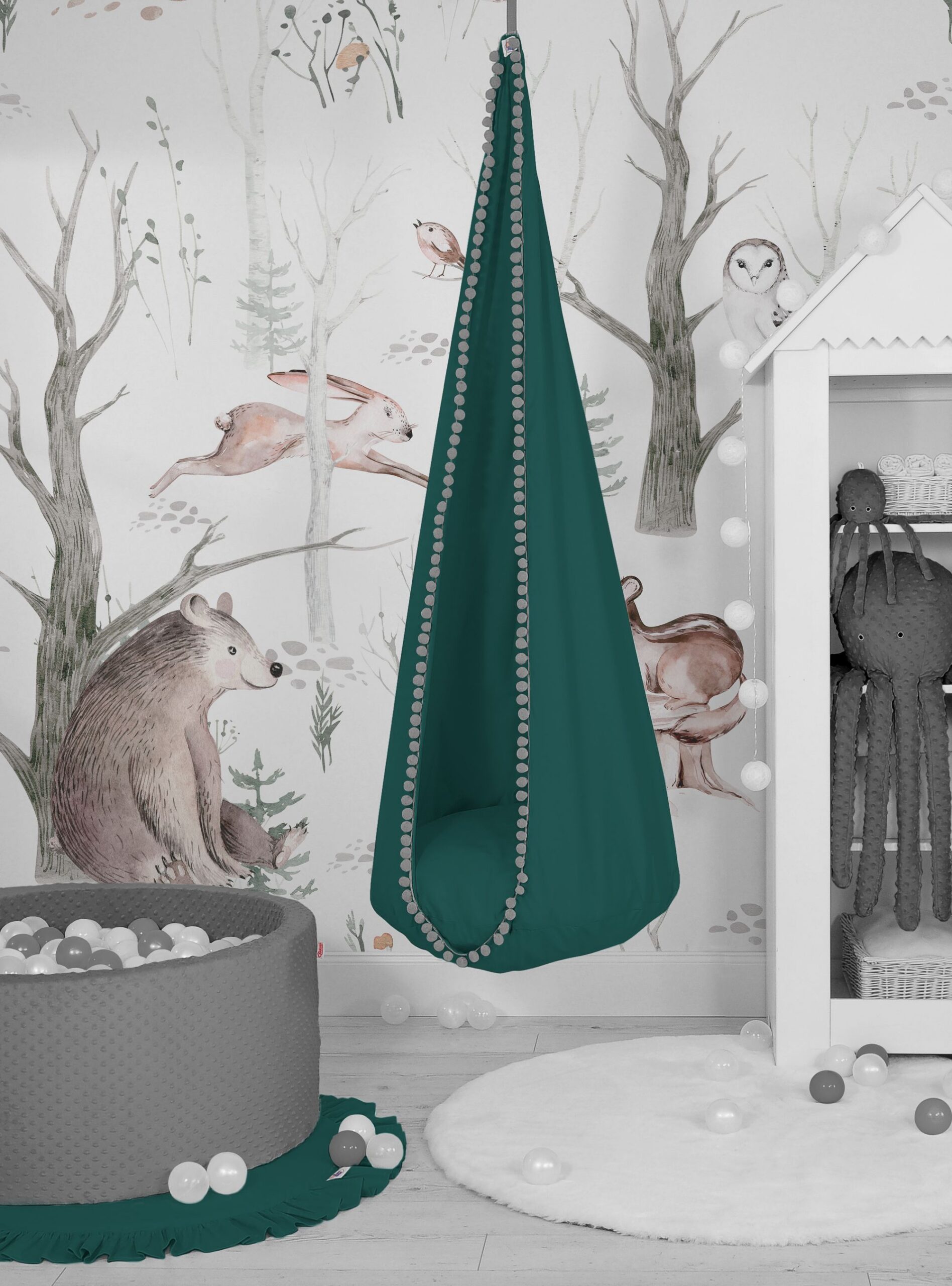 Wisząca huśtawka hamak kokon My Sweet Baby – butelkowa zieleń