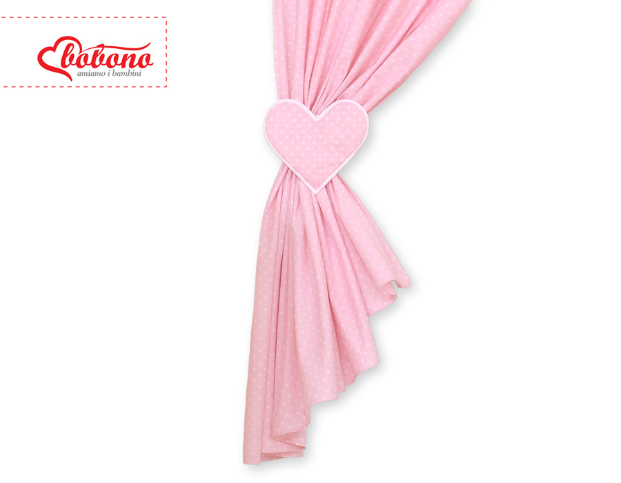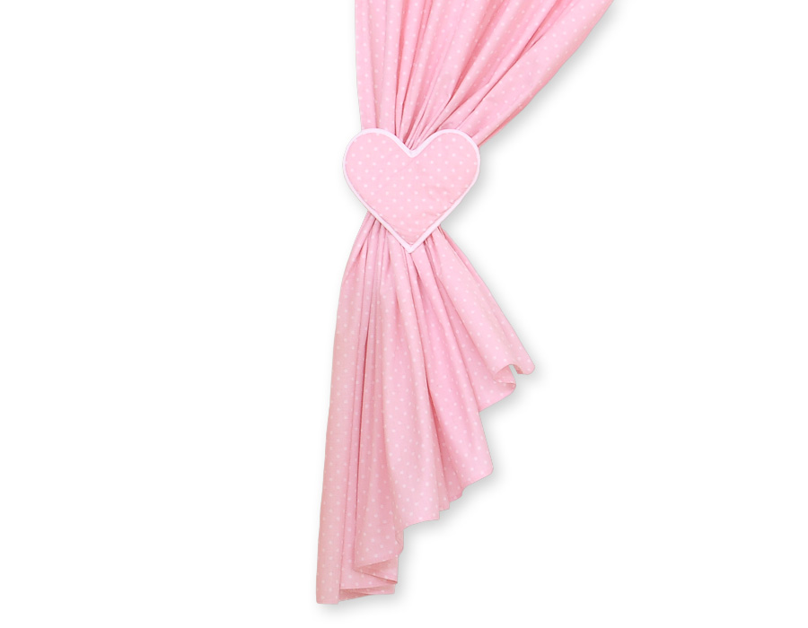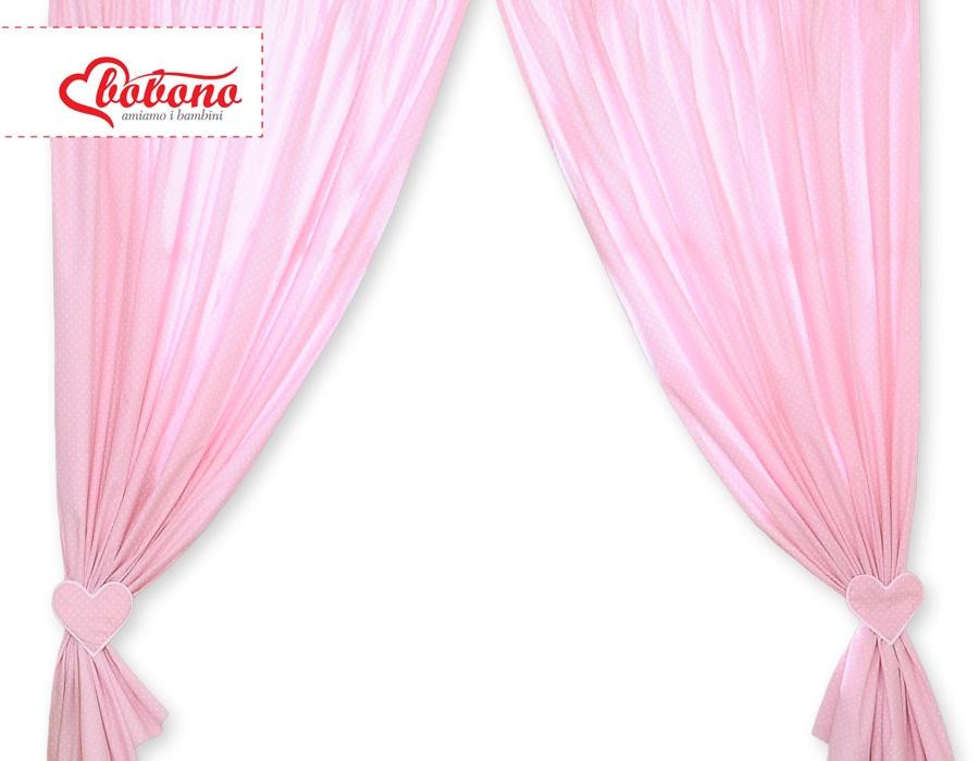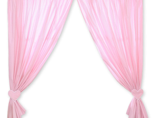 Zasłonki do pokoju dziecięcego- Wiszące serduszka kropki na różu