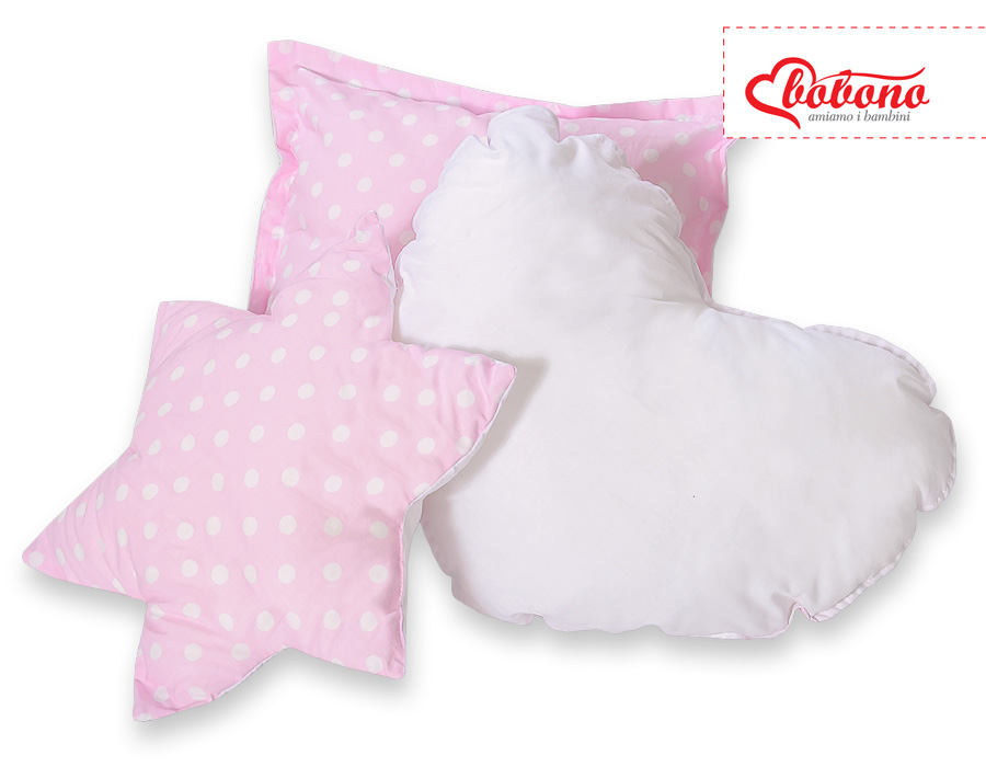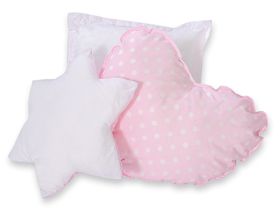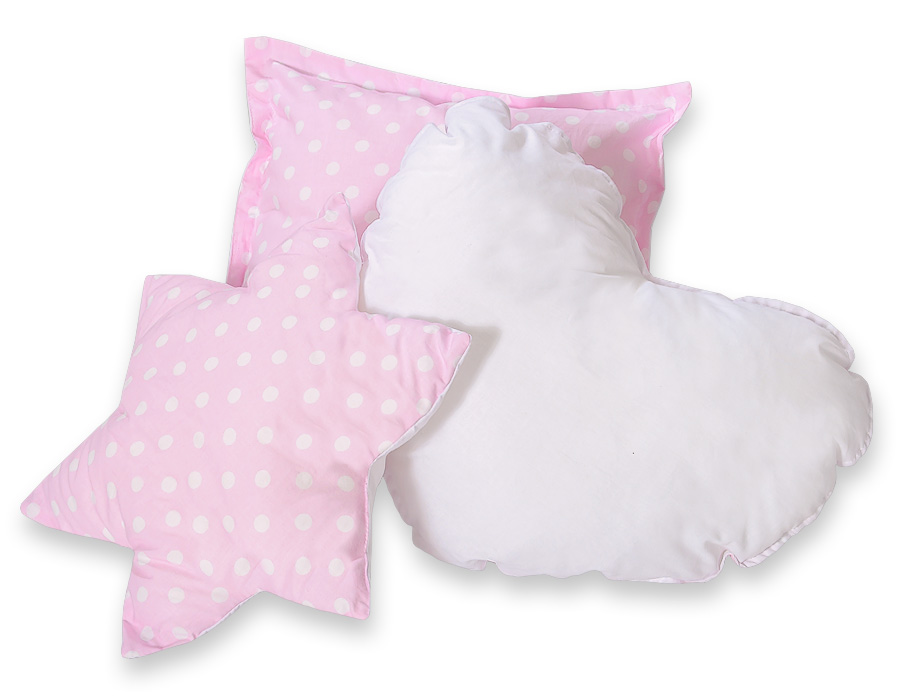 Zestaw miekkich, puszystych, poduszek, dopasowanych kolorystycznie do namiotu. Każda poduszka w innym oryginalnym, dekoracyjnym kształcie. Poduszki są dwukolorowe – każda strona z innego materiału. Doskonałe także jako kolorowa, miękka dekoracja pokoju dziecięcego.