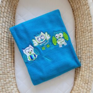 Kocyk polarowy dla niemowląt - Sowy Bigi Zibi & Adele- turkusowy