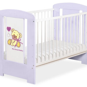 Drewniane łóżeczko dla niemowląt 120x60cm Miś z kokardką biało-fioletowe