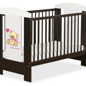 Drewniane łóżeczko dla niemowląt 120x60cm Miś z kokardką różowo-brązowe