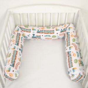 Ochraniacz wałek do łóżeczka niemowlęcego - pociąg turkusowy