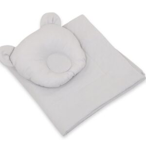 Pościel dla niemowląt z wypełnieniem kołderka i poduszka profilowana Miś - zestaw 2cz. - szary