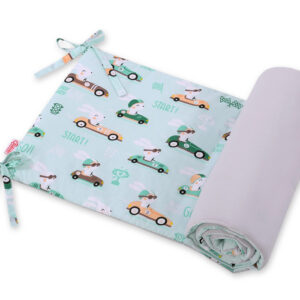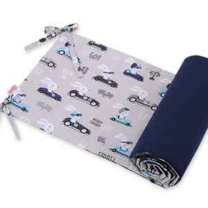 Uniwersalny ochraniacz do łóżeczka - zające w autkach szare