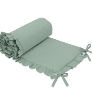 Uniwersalny ochraniacz z falbanką do łóżeczka niemowlęcego - szałwia