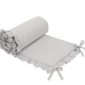 Uniwersalny ochraniacz z falbanką do łóżeczka niemowlęcego - szary